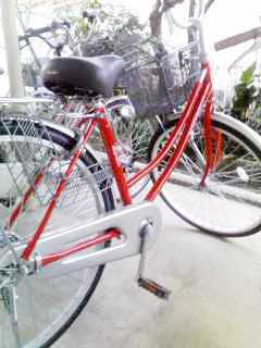 ペカペカの赤いボディーのザ☆ママチャリ。